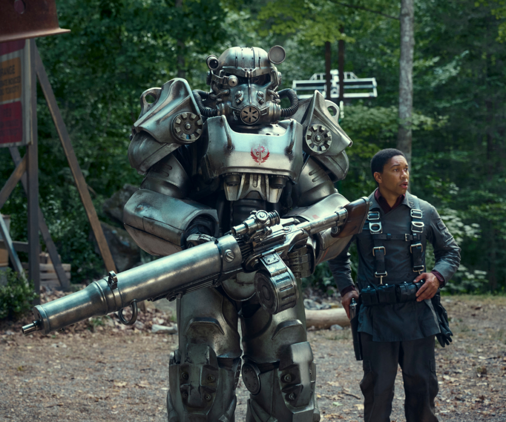 As a child, Maximus was taken in by the militaristic cult called the Brotherhood Of Steel. He’s loyal to them, but is brutally bullied by the other recruits. When he sees the chance to become squire to an armour-wearing knight, he leaps at it. But both Lucy and Maximus will find their lives under threat from a terrifying bounty hunter known as The Ghoul (Walton Goggins).